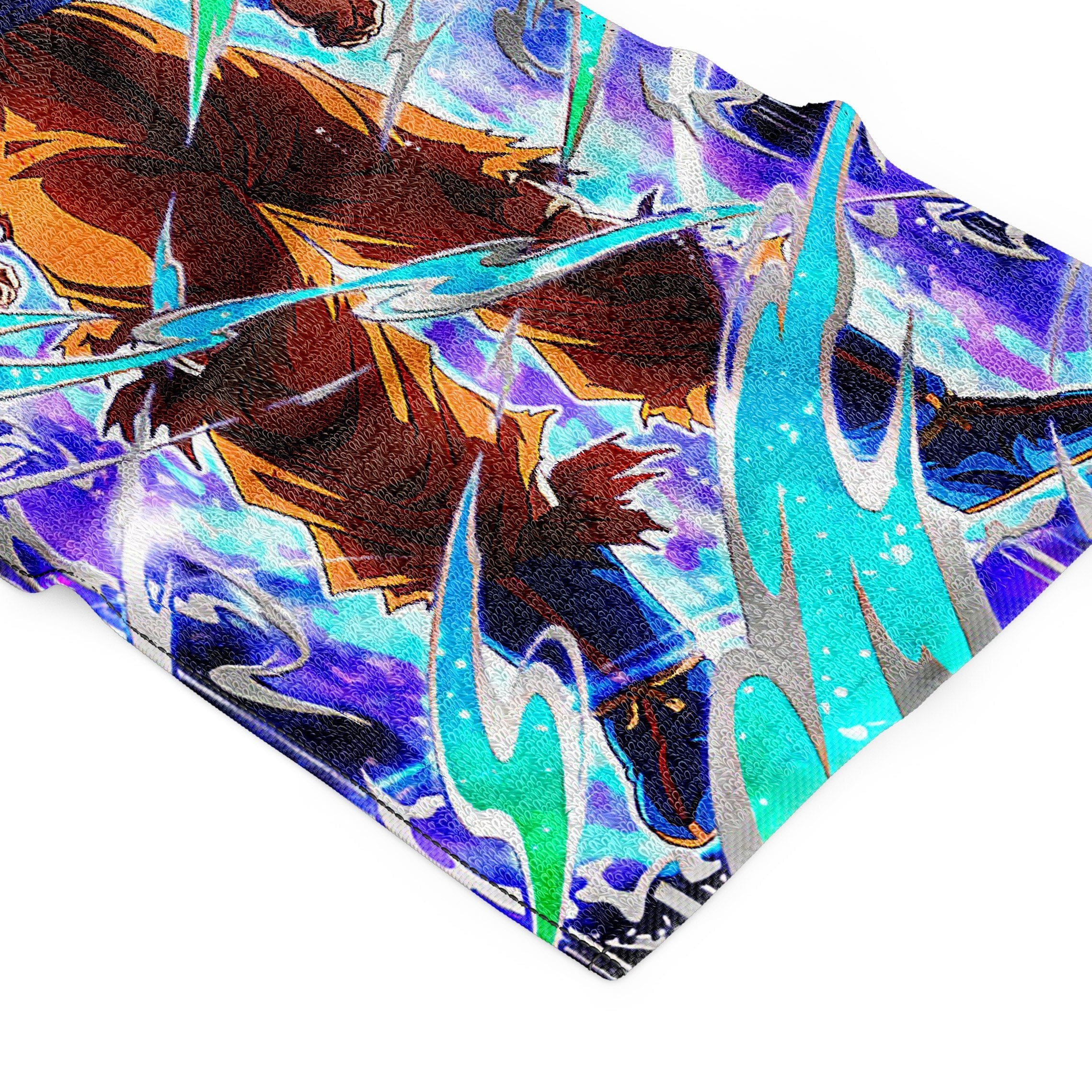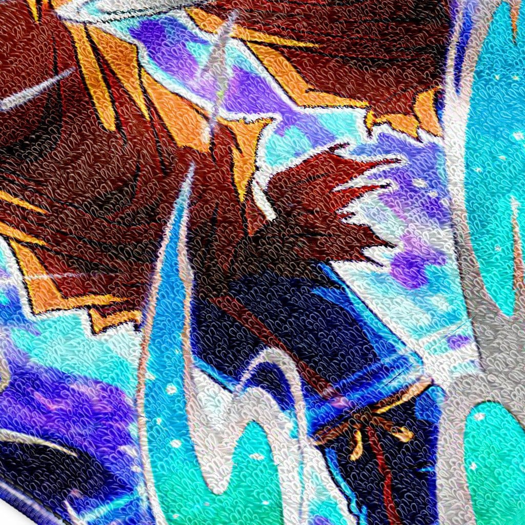 Cette serviette aux motifs de l’Aura Légendaire de Goku est faite d’un mélange de polyester et de coton et a été imprimée avec des couleurs et des détails précis pour un rendu optimal.